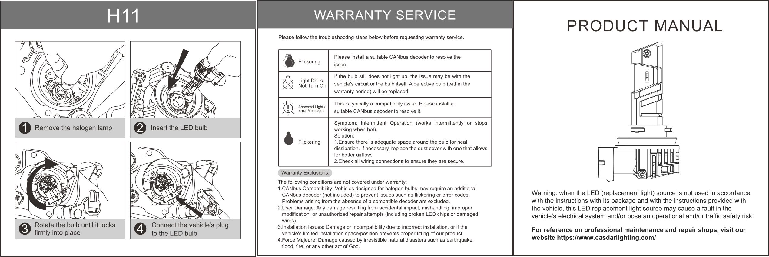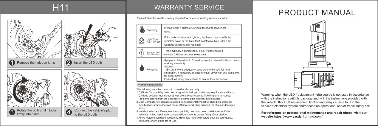 Warning: when the LED (replacement light) source is not used in accordance with the instructions with